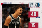 北京時(shí)間10月23日,文班亞馬在球隊(duì)揭幕戰(zhàn)狂砍40分15板3帽0失誤,是歷史上第三位能砍下40分15板3帽且0失誤的球員,另兩位是奧尼爾和濃眉。