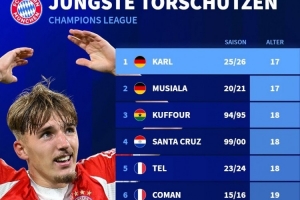 體育資訊10月23日訊 歐冠聯(lián)賽階段第三輪比賽,倫納特-卡爾破門,拜仁主場4-0擊敗布魯日。據(jù)德國轉(zhuǎn)會市場統(tǒng)計,倫納特-卡爾是拜仁隊史最年輕歐冠進球者,也是歐冠進球最年輕的德國球員。