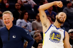 當(dāng)戈登射中第十個(gè)三分球,達(dá)成了約基奇的三雙時(shí),庫里毫無邏輯、極不合理的34尺超遠(yuǎn)射,120平。拖進(jìn)加時(shí)。