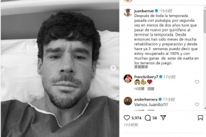 體育資訊10月24日訊 西班牙32歲左后衛(wèi)貝爾納特更新社媒動(dòng)態(tài),表示自己從傷病中康復(fù)。