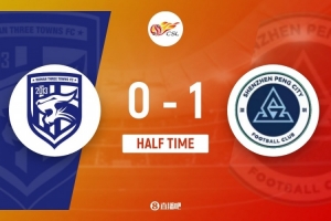 傷停補時5分鐘。上半場比賽結(jié)束,武漢三鎮(zhèn)0-1深圳新鵬城。