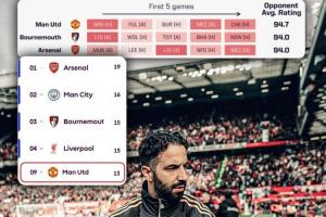 根據(jù)Opta的賽程難度評級,曼聯(lián)是本賽季英超開局最艱難的球隊……