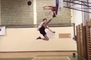舍什科說(shuō):“是的,那確實(shí)是我。挺搞笑的,因?yàn)楫?dāng)時(shí)球卡在籃框,我也不知道為什么就想用腳去把它夠下來(lái)。這可不是每個(gè)人都能做到的。”