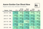 戈登職業(yè)生涯各區(qū)域命中率的變化情況