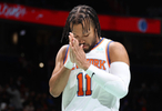 尼克斯的勝利,是 “雙核驅(qū)動(dòng) + 內(nèi)線碾壓” 的完美詮釋。布倫森用 31 分 5 助攻的表現(xiàn)續(xù)寫(xiě) “關(guān)鍵球殺手” 。第三節(jié)兩記三分穩(wěn)住領(lǐng)先,末節(jié)在布朗命中三分將分差迫近至 9 分時(shí),他用標(biāo)志性的干拔三分終結(jié)懸念,罰球線 9 中 8 的穩(wěn)定表現(xiàn)更凸顯大心臟屬性。這早已是他的常規(guī)操作,上賽季常規(guī)賽他在關(guān)鍵時(shí)刻場(chǎng)均能轟下 5.6 分,命中率高達(dá) 51.5%,正是這種硬解能力讓尼克斯在膠著時(shí)刻總能占據(jù)主動(dòng)。