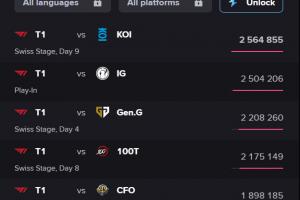 體育資訊10月25日訊 S15海外直播收視率更新,今天T1vsMKOI的瑞士輪出線生死戰(zhàn)熱度來到第一,超越T1vsiG的入圍賽Bo5。