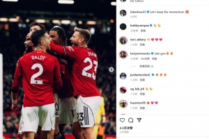 盧克-肖也在賽后通過社媒曬出和隊友的相擁慶祝照,并配文:“讓我們延續(xù)當前的勢頭!”