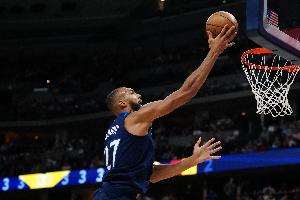 上半場,森林狼內(nèi)線戈貝爾表現(xiàn)還可以,在17分鐘的時(shí)間里,投籃9中4,罰球5中2,拿到10分5籃板1蓋帽的數(shù)據(jù)。