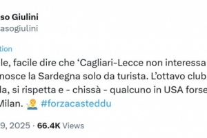 朱利尼寫(xiě)道:“親愛(ài)的卡迪納萊,當(dāng)你對(duì)(卡利亞里主場(chǎng)所在地)撒丁島的了解僅限于游客視角時(shí),說(shuō)‘沒(méi)人關(guān)心卡利亞里對(duì)陣萊切的比賽’當(dāng)然容易。作為意大利球迷數(shù)量排名第八的俱樂(lè)部,卡利亞里既有觀眾關(guān)注,也備受尊重。而且誰(shuí)知道呢,在美國(guó),或許支持卡利亞里的人比支持米蘭的還多(注:在美國(guó)有很多來(lái)自撒丁島移民的后裔)?!?/p>