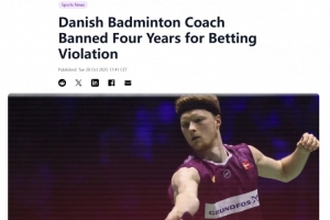 體育資訊10月29日訊 丹麥羽毛球名將安東森的前教練佩爾森因涉違規(guī)投注,被世界羽聯(lián)禁賽4年。