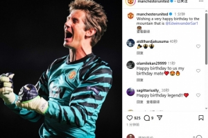 曼聯(lián)官方Instagram寫道:“祝門前的那座大山——范德薩生日快樂!”