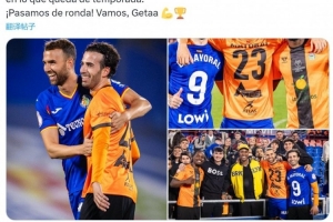“祝巴爾德莫羅本賽季剩余比賽好運(yùn)。我們晉級了!加油,赫塔費(fèi)!”