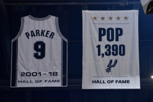 這面旗幟的每一處細(xì)節(jié),都是對(duì)傳奇的精準(zhǔn)注解。白色底紋上,五顆金色星星對(duì)應(yīng)著2003至2014年間的五座總冠軍獎(jiǎng)杯,底部“HALL OF FAME(名人堂)”標(biāo)識(shí)銘記著他2023年的榮耀加冕,而核心的“1390”字樣,則是波波維奇執(zhí)教的豐碑。數(shù)據(jù)不會(huì)說謊:2214場執(zhí)教、1390場勝利、62.8%勝率、22個(gè)賽季帶隊(duì)闖進(jìn)季后賽,季后賽總勝場達(dá)到170場,5次總冠軍,3次獲得年度最佳教練。但比起數(shù)字,更動(dòng)人的是致敬方式——沒有盛大儀式,恰如波波維奇本人,永遠(yuǎn)將聚光燈讓給團(tuán)隊(duì)。