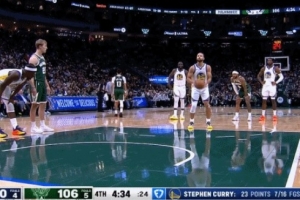 GIF-庫(kù)里制造犯規(guī)兩罰一中