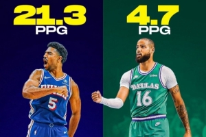 格萊姆斯在76人目前是場(chǎng)均21.3分,而馬丁在獨(dú)行俠則是18場(chǎng)共得85分,場(chǎng)均4.7分。