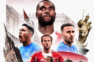 拜仁官方更新社媒動態(tài),發(fā)布了為此役制作的海報(bào),凱恩、奧利塞、若納坦-塔出鏡。