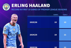 哈蘭德曼城生涯英超賽季前10輪進球統(tǒng)計