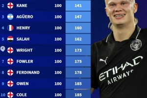 體育資訊11月3日訊 德轉盤點了英超歷史達成百球最快用時榜,而哈蘭德107場98球十分有望創(chuàng)造新的紀錄,以下為具體榜單:
