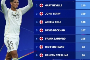 體育資訊11月5日訊 在本輪歐冠,利物浦1-0擊敗皇馬。貝林厄姆完成生涯50場(chǎng)歐冠里程碑,德轉(zhuǎn)也盤點(diǎn)了英格蘭球員歐冠出場(chǎng)次數(shù)榜,具體如下: