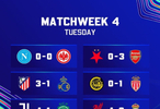 【歐冠賽果】 今天凌晨結(jié)束的#歐冠聯(lián)賽# 第4??輪第①比賽日賽果。