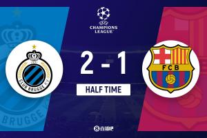 上半場傷停補時2分鐘,半場結(jié)束,巴薩暫1-2布魯日。