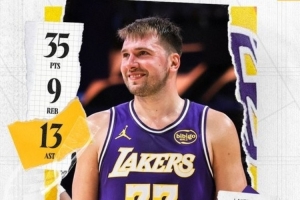 賽后湖人官方發(fā)布東契奇數(shù)據(jù)海報:“對于盧卡來說又一個表現(xiàn)出色的夜晚?!?/p>