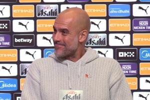 體育資訊11月07日訊 曼城主帥瓜迪奧拉出席對(duì)陣?yán)锲值挠⒊惽鞍l(fā)布會(huì),被問(wèn)到自己是否是足壇歷史最佳主帥時(shí),瓜帥搞怪地表示同意。