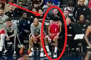 GIF-哈登被換下一屁股癱坐在板凳