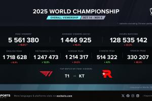 據(jù)外媒統(tǒng)計(jì),S15總決賽Bo5的海外直播平臺(tái)巔峰收視為556萬(wàn),相比去年S14決賽熱度有所下滑。