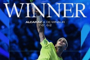 體育資訊11月9日訊 ATP總決賽吉米·康納斯組首輪,頭號(hào)種子阿爾卡拉斯7-6(5) 6-2擊敗7號(hào)種子德米納爾,順利取得小組賽開門紅。