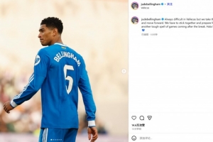 貝林厄姆曬出自己的比賽照,并配文:“客戰(zhàn)巴列卡諾總是很艱難,但我們拿到了一分并繼續(xù)向前看。我們必須團結一致,為國家隊比賽周之后的又一輪密集賽程做好準備。馬德里前進!”