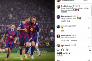 德容社媒曬出與萊萬(wàn)慶祝進(jìn)球的合照,配文:“球隊(duì)展現(xiàn)了很棒的態(tài)度,收獲一場(chǎng)重要的勝利。”