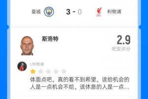 凌晨英超第11輪焦點(diǎn)戰(zhàn),利物浦0-3不敵曼城,近6輪英超吞下5場(chǎng)敗仗。利物浦主帥斯洛特本場(chǎng)的戰(zhàn)術(shù)安排,以及不換下薩拉赫的決定再次遭到球迷指責(zé),吧友們給他打出了2.9分的超低分。
