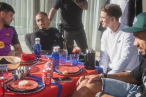 阿勞霍積極倡導(dǎo)這類團(tuán)隊(duì)活動(dòng),拉菲尼亞也在Instagram中分享了多張聚餐照片。我們可以看到阿勞霍與隊(duì)友們以及包括理療師在內(nèi)的俱樂(lè)部員工圍坐在餐桌旁,桌上鋪著藍(lán)紅相間的桌布,彰顯了對(duì)俱樂(lè)部的熱愛(ài)。