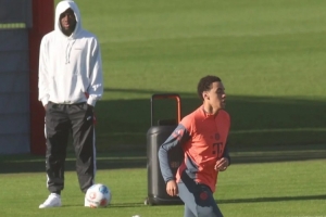值得一提的是,好友阿方索·戴維斯(25歲/7個半月前右膝十字韌帶撕裂)在訓(xùn)練課開始后不久便身著休閑服來到訓(xùn)練場。這位加拿大國腳隨著穆西亞拉用手機連放的XXL音響中說唱樂節(jié)奏舞動,并為正在進(jìn)行恢復(fù)訓(xùn)練的伙伴歡呼助威。這位左后衛(wèi)情緒高漲,強勁的節(jié)拍響徹拜仁訓(xùn)練基地。