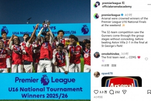 在這項(xiàng)由32支球隊(duì)參與的賽事中,阿森納U16在小組賽階段保持零失球紀(jì)錄,最終在圣喬治公園舉行的決賽中2-1擊敗阿斯頓維拉。