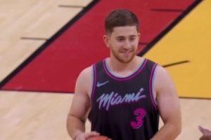 體育資訊11月11日訊 熱火主場迎戰(zhàn)騎士,節(jié)間休息時(shí)間球迷半場三分活動(dòng),一位熱火球迷半場三分一擊命中,拿走5000美元獎(jiǎng)金。