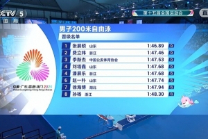 體育資訊11月11日訊 全運會男子200米自由泳半決賽結束爭奪,張展碩排名第一,費立緯排名第二,季新杰排名第三,老將孫楊排名第八晉級決賽。