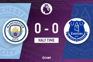 上半場(chǎng)傷停補(bǔ)時(shí)2分鐘,半場(chǎng)結(jié)束,曼城暫0-0埃弗頓。