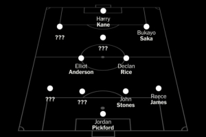 其中,皮克福德將是主力門將,里斯·詹姆斯是主力右后衛(wèi),斯通斯確定一個(gè)首發(fā)中衛(wèi)位置;中場(chǎng)位置確定了賴斯、埃利奧特·安德森兩個(gè)首發(fā);前鋒位置凱恩、薩卡穩(wěn)坐首發(fā)。