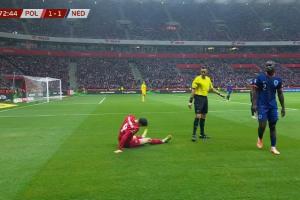體育資訊11月15日訊 波蘭vs荷蘭第74分鐘,萊萬在爭搶時受傷,直接坐下了,但暫時沒有換人。