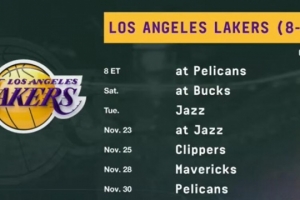 未來7場對手分別是:鵜鶘、雄鹿、爵士、爵士、快船、獨行俠、鵜鶘