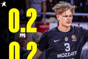 體育資訊11月17日訊 明年的熱門新秀穆里寧截止目前為止,在歐籃聯(lián)只出場4次,場均出場時間僅為1分55秒,而他的場均數(shù)據(jù)可以忽略不計,4場比賽合計就得到1分,場均為0.25分,也沒有籃板、助攻進賬。