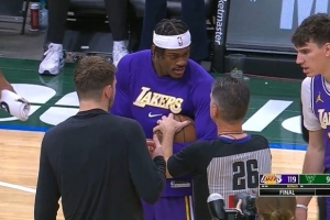 體育資訊11月17日訊 昨天湖人戰(zhàn)勝雄鹿的賽后,雙方球員以及裁判針對比賽用球展開了一段拉扯。