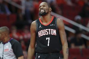 杜蘭特弧頂面對(duì)小瓦格納中投命中,對(duì)此,火箭隊(duì)記Lachard Binkley評(píng)論道:“如果有人在休賽期質(zhì)疑為什么交易來37歲的凱文·杜蘭特,這就是原因。他是終極終結(jié)者。“