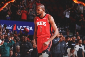 末節(jié)杜蘭特連中關(guān)鍵三分,加時賽的中投也幫助火箭擴(kuò)大優(yōu)勢。