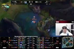 Oner:玄準(zhǔn)哥第一局看來(lái)是很緊張吧,大一直都不中啊玄準(zhǔn)哥。雖然我跳過(guò)去了,但是我其實(shí)去gank了好幾次,大概去gank了2次吧,但是2次大都沒(méi)中??!我們玄準(zhǔn)哥。所以想著,怎么回事?怎么回事?稍稍有了這樣的想法。玄準(zhǔn)哥說(shuō),把閃打掉了,他沒(méi)閃,來(lái)一下就去了的,但是大沒(méi)中呢。這是有可能的。其實(shí)是不能這樣的,原來(lái)就是得大到的,所以最后gank還是沒(méi)能成功,有點(diǎn)可惜。