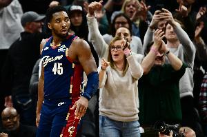 騎士主將米切爾上半場表現(xiàn)神勇,在球隊(duì)開局表現(xiàn)不佳的情況下,他幫助球隊(duì)緊咬比分,第二節(jié)又延續(xù)狀態(tài)帶領(lǐng)球隊(duì)完成反超。