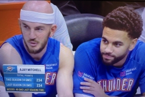 比賽中轉(zhuǎn)播方曬出一組數(shù)據(jù):本賽季阿杰伊·米切爾出戰(zhàn)14場(chǎng)比賽,已拿到234分。而上賽季阿杰伊一共只打了36場(chǎng)比賽,總共得到234分!