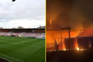 talksport寫道,由于??巳爻求w育場(chǎng)發(fā)生火災(zāi),他們被迫推遲英甲聯(lián)賽比賽。球場(chǎng)多處區(qū)域起火,球場(chǎng)遭到破壞 。